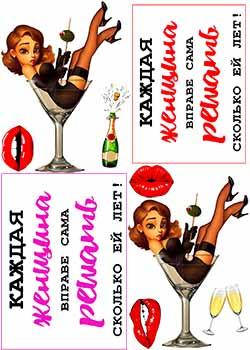 С Днём рождения" (А4) Вафельная картинка "Каждая женщина сама решает, сколько ей лет . Девушка в бокале . С Днём рождения" (А4) Код товара: VK1182 . Доступность: На складе . 42 грн . Уведомить о наличии . Вафельную картинку "Каждая женщина сама решает, сколько ей лет .