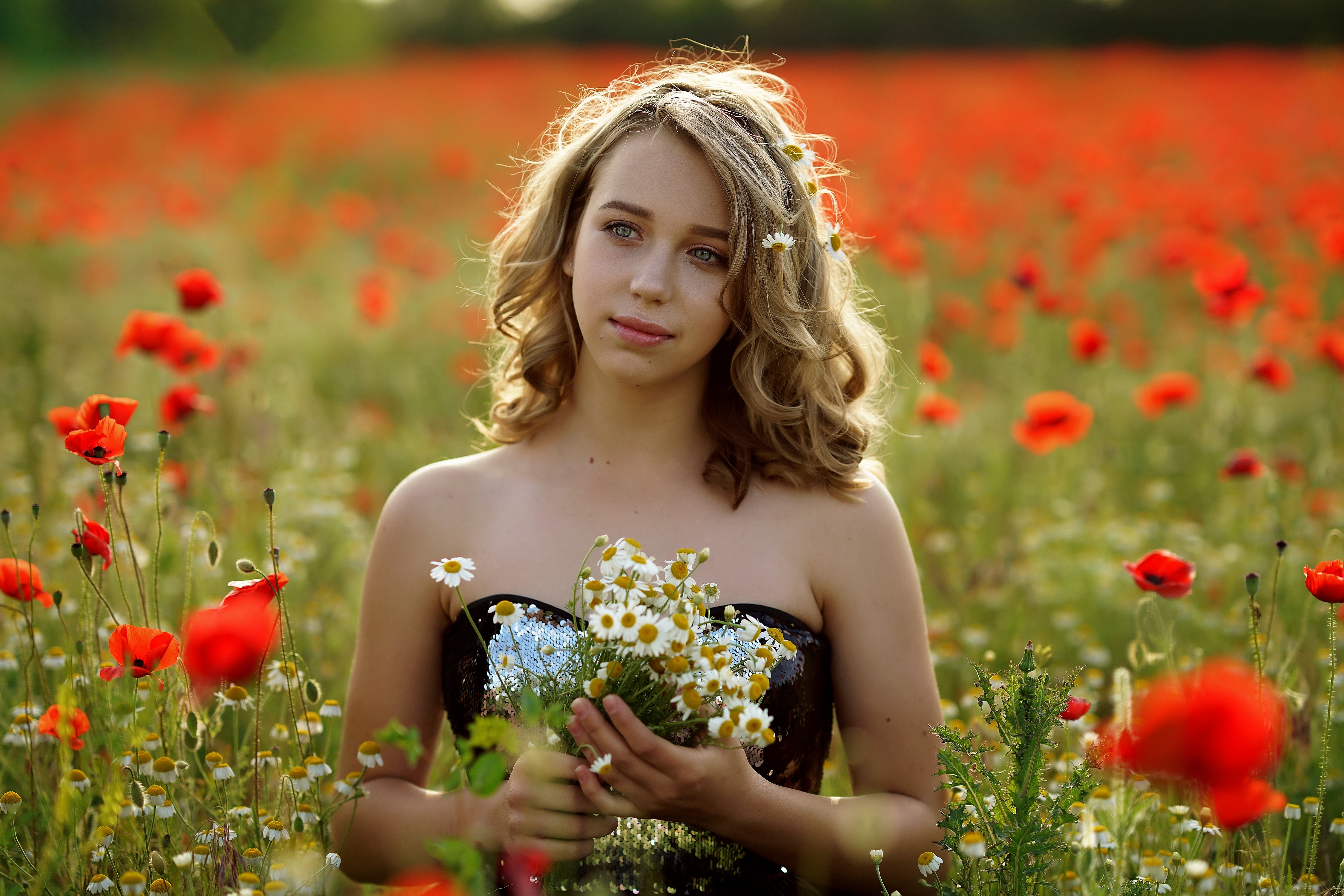 Девушка В Поле С Цветами Фото