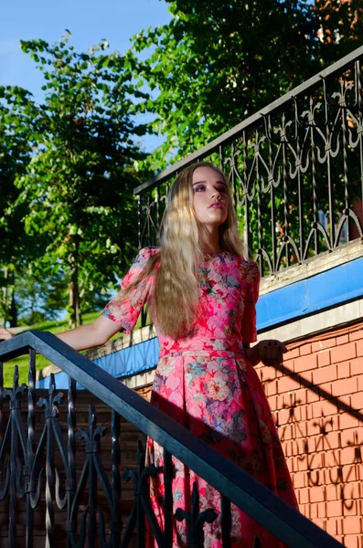 Девушка в ярком платье позирует — Стоковое фото . . .
