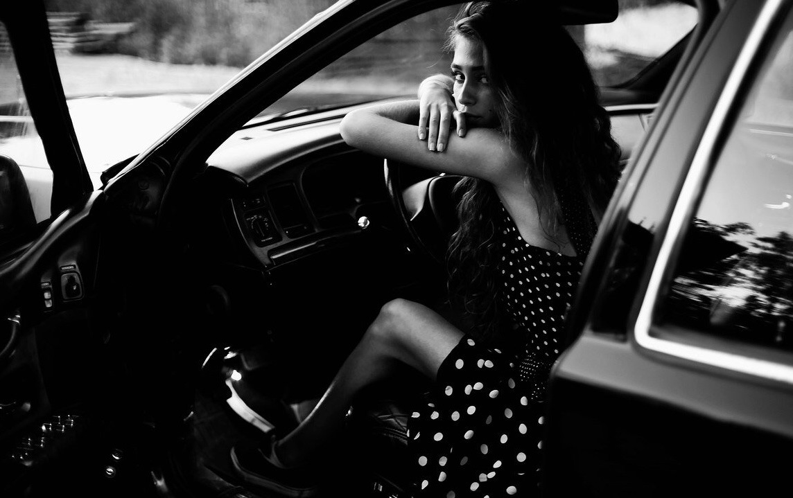 Девушка За Рулем Черно Белое Фото