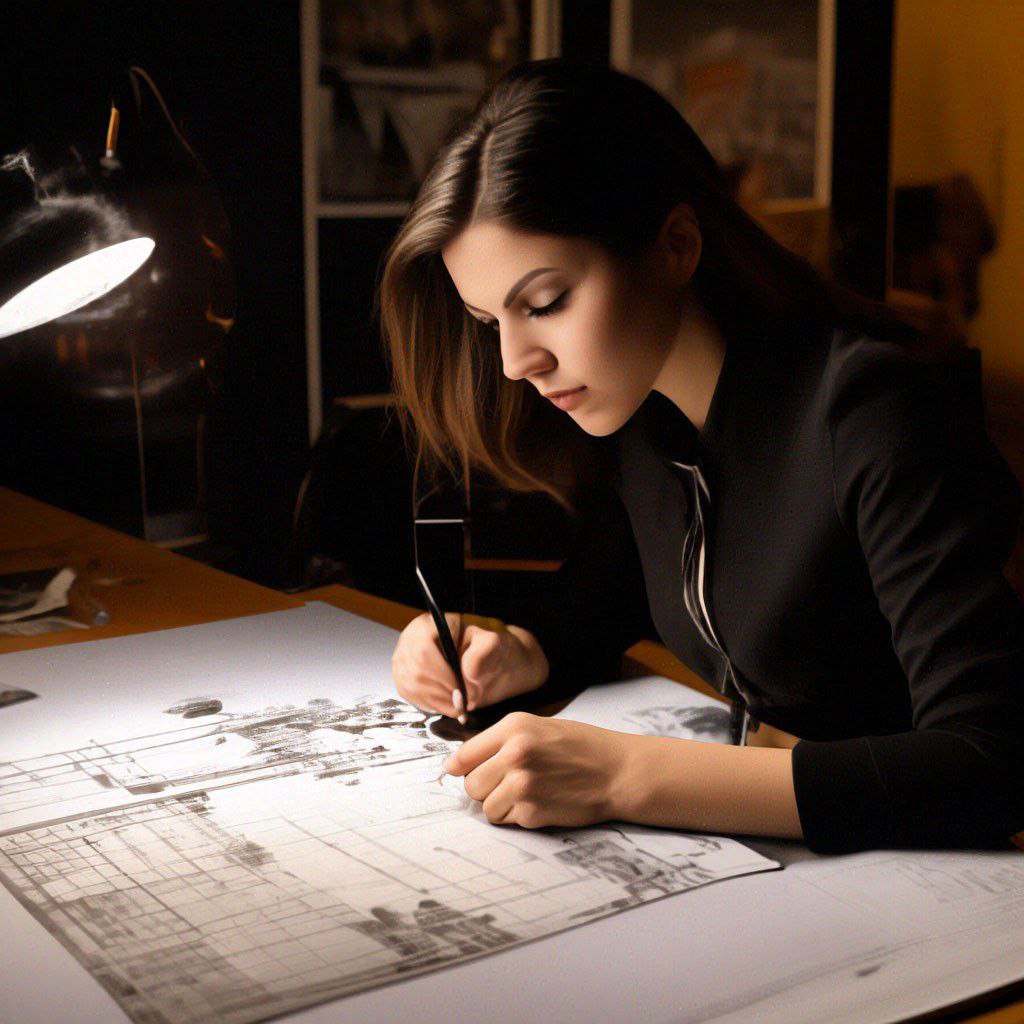 Девушка чертила