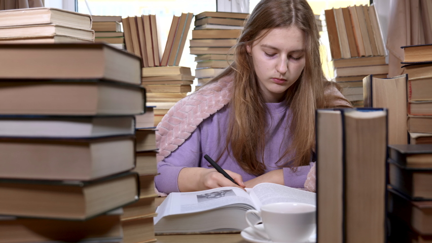 Девушка читает в библиотеке 106 фотографий