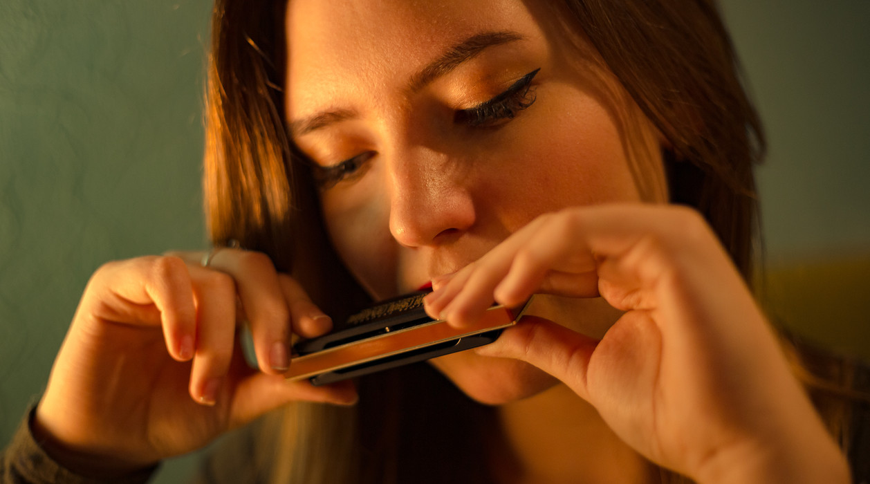 Девушка играет гармошка