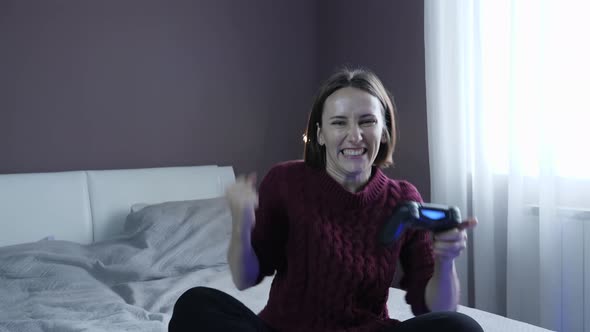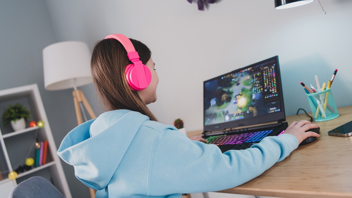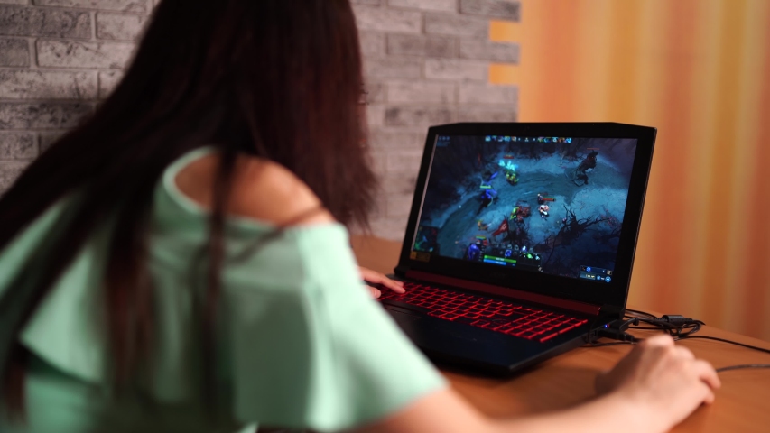 Девушка играет в видео игру 99 фотографий