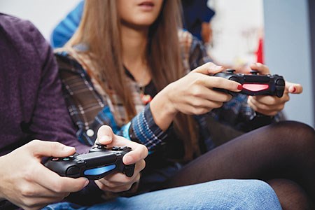 Девушка играет в видео игру