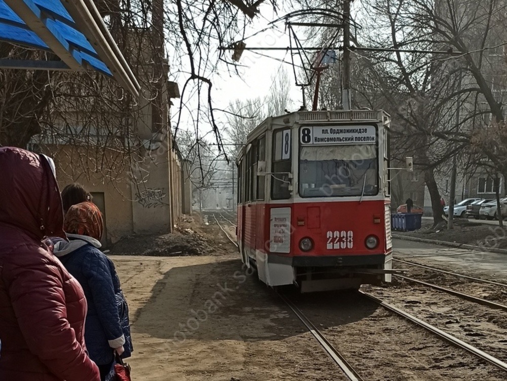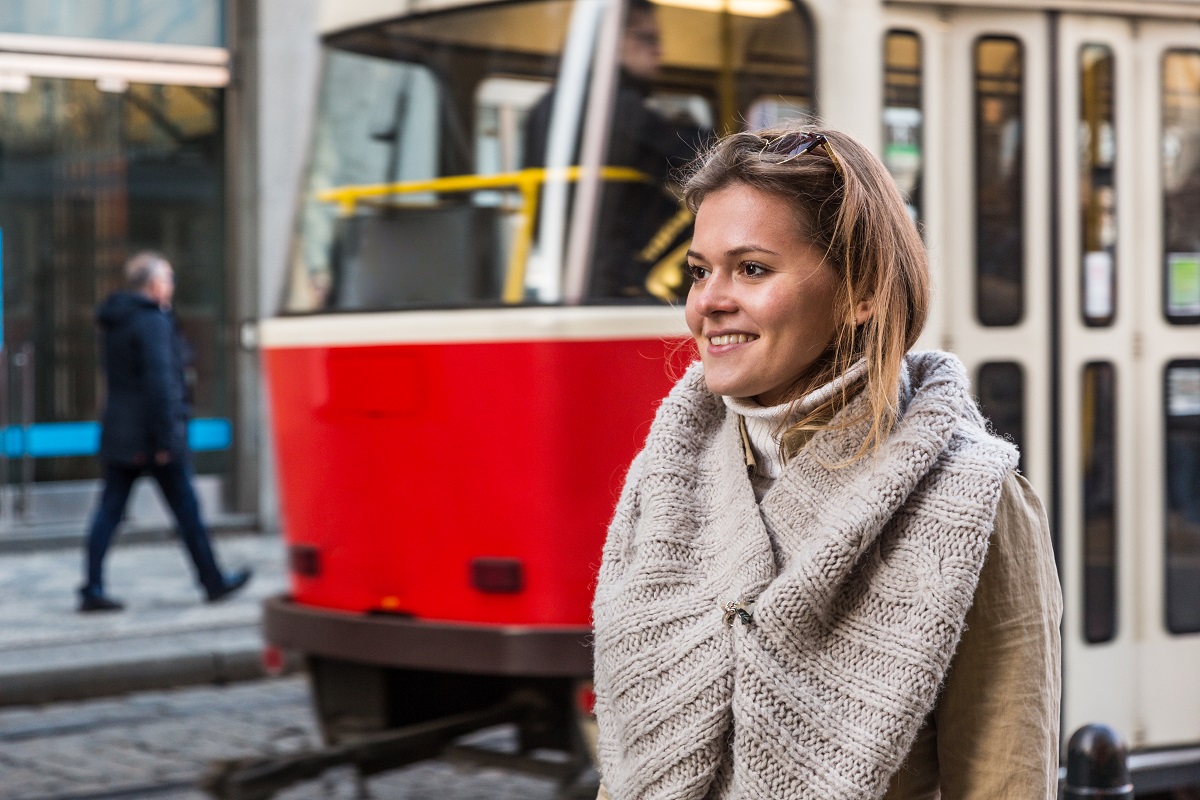 Девушка на остановке трамвая
