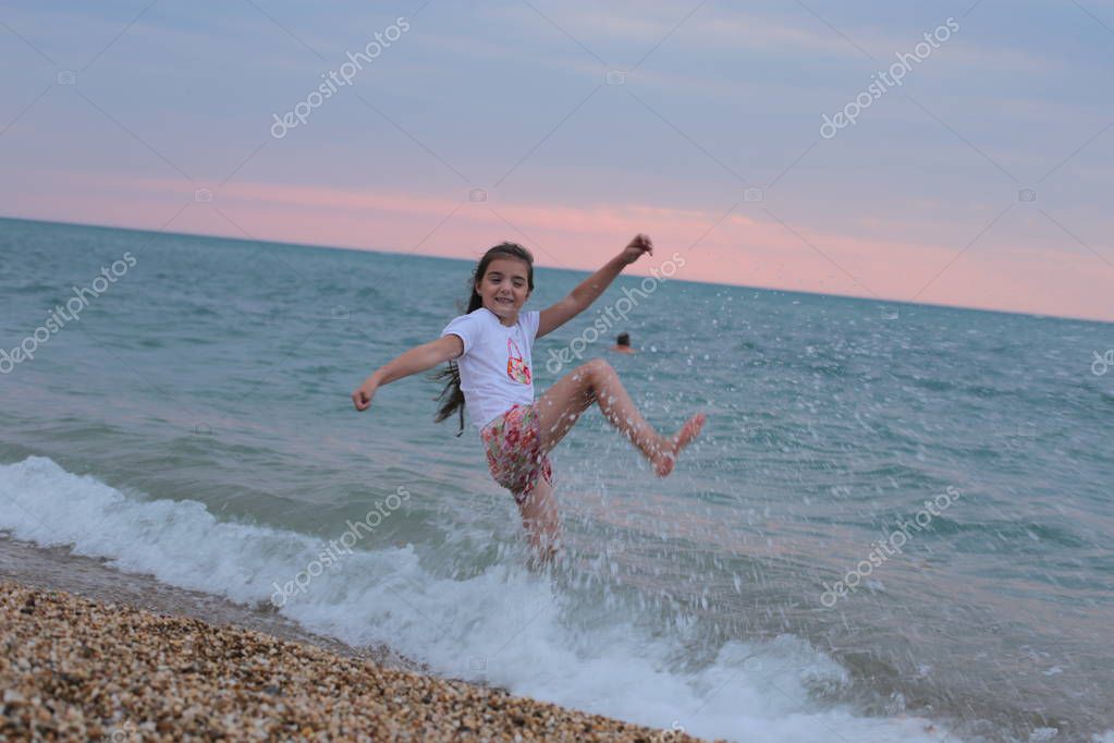 Девушка с длинными волосами на море
