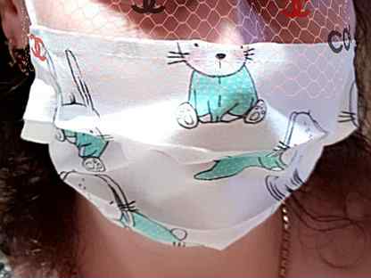 Девушка снимает сначала защитную маску, а потом и трусики