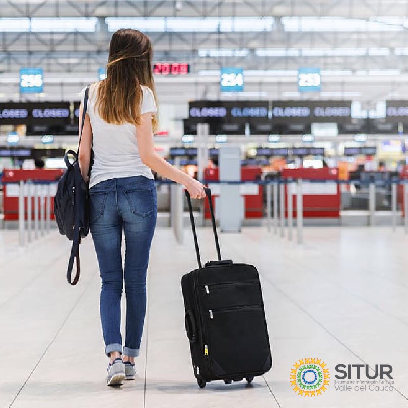 Девушка в чемодане в аэропорту