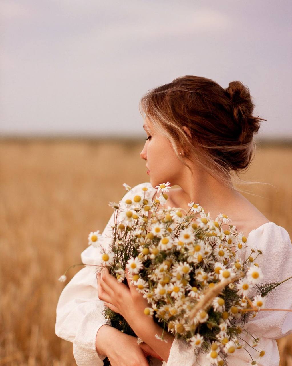 Девушка в поле с ромашками 117 фото