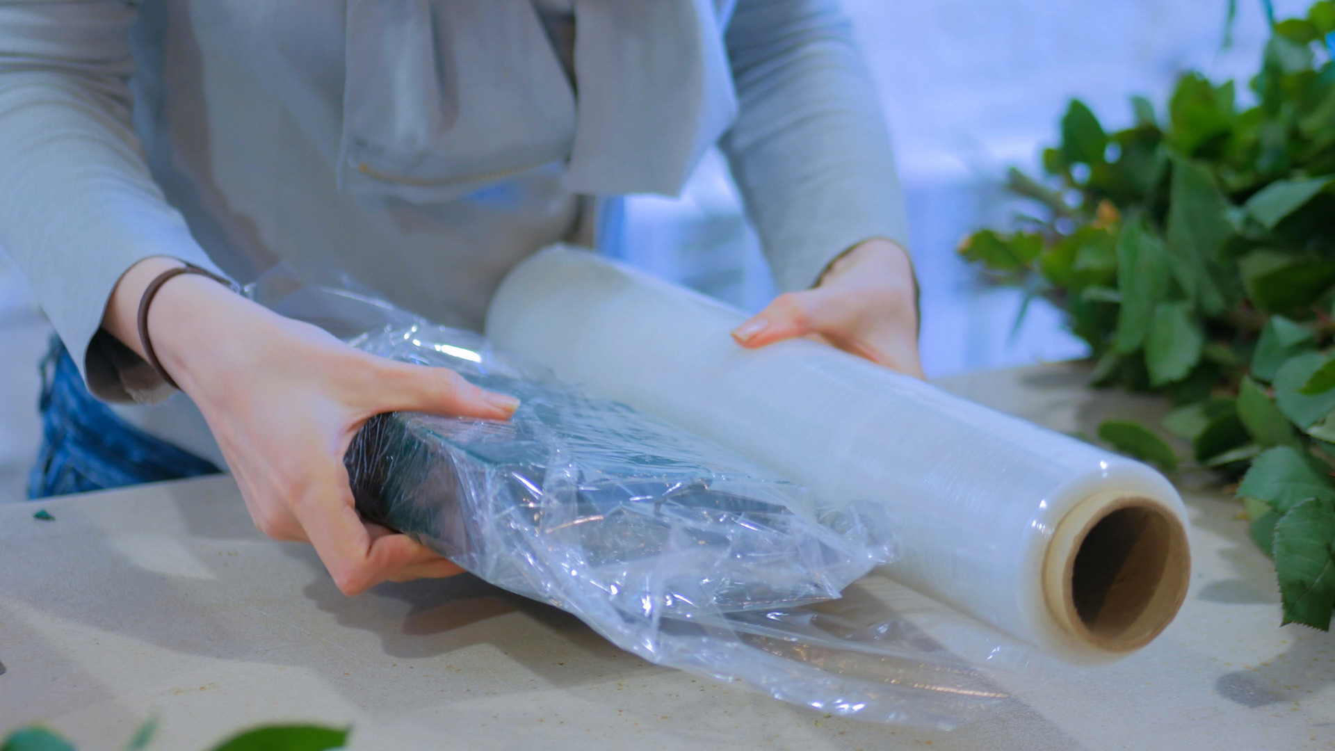 Девушка замотана в пленку