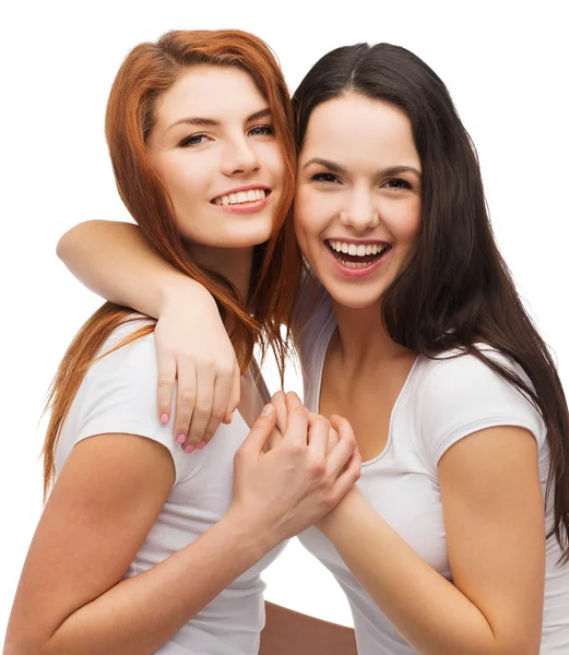 Две смеющиеся девушки обнимаются картинки, стоковые фото . . .
