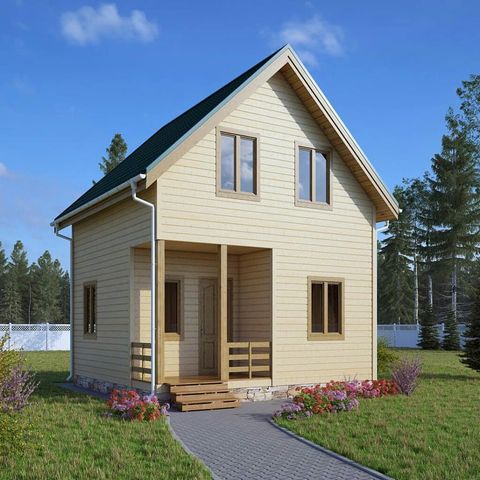 Планировка свободная: Перегородка врубается на месте, где Вы захотите, также и окна и двери выпиливаются по месту. Изделие доставляется на участок заказчика без выпиленных проёмов. На втором этаже устанавливается стропильная система с высотой в коньке 3,5 м. Выставляется каркас комнаты второго этажа.