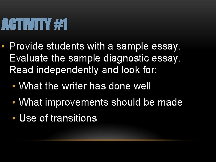 A diagnostic essay is best written by dividing the paper into three sections: introduction, body, and conclusion . A diagnostic essay is time-bound thus the author must set aside some time to go through the question and plan how to effectively write the essay . A captivating introduction and a clear thesis are aspects that make a diagnostic . . .