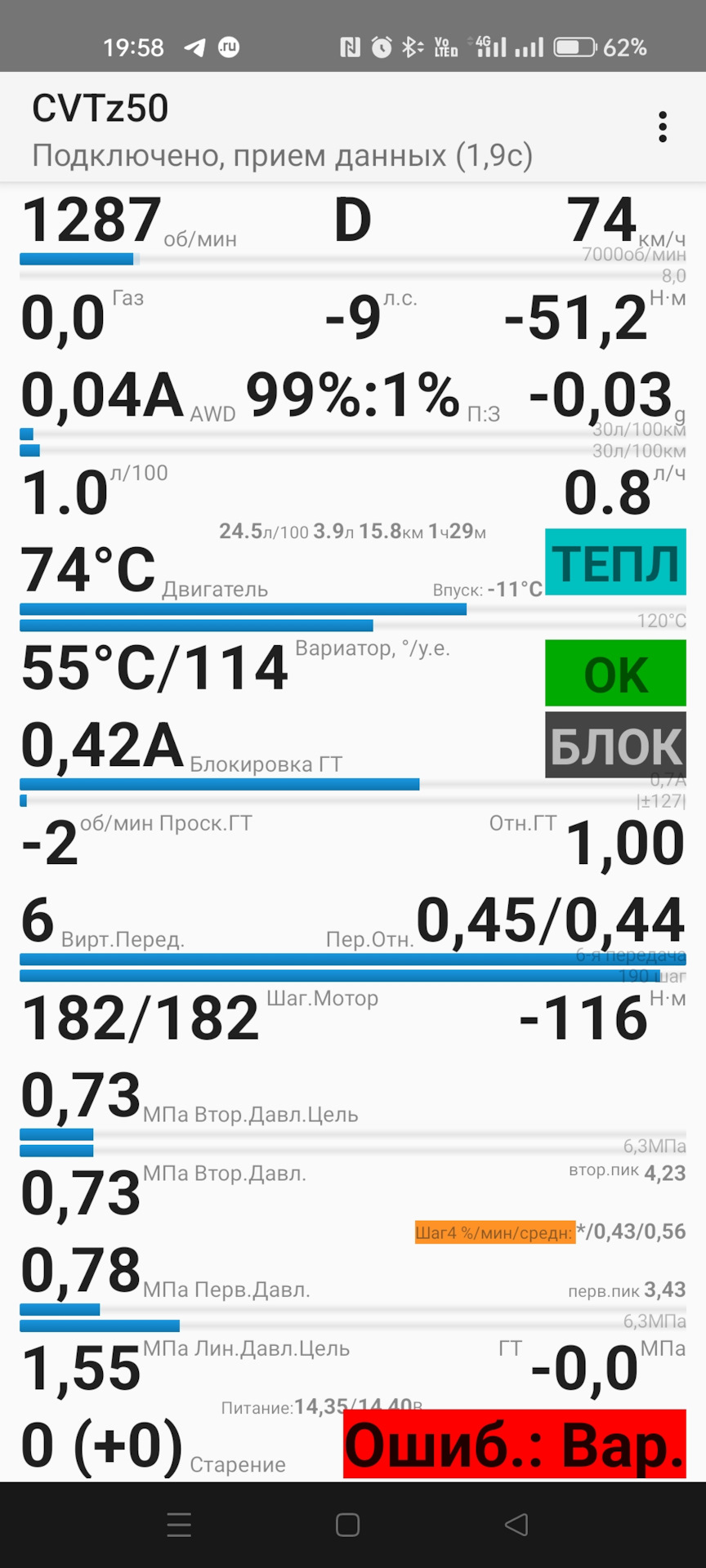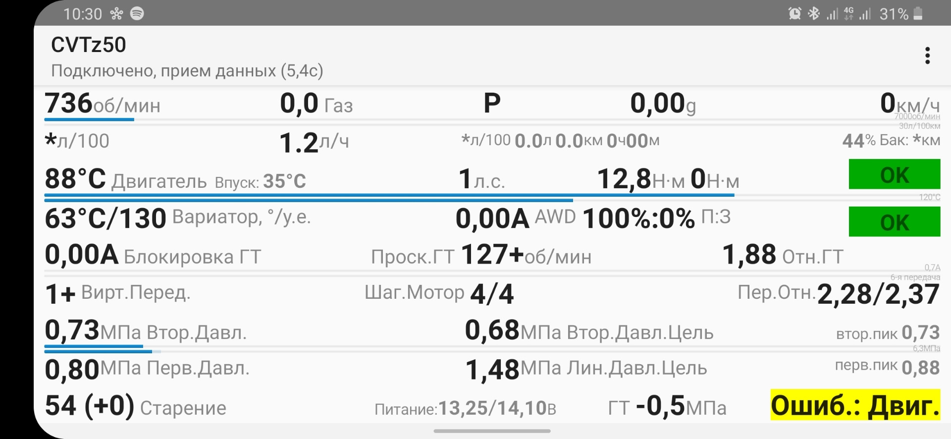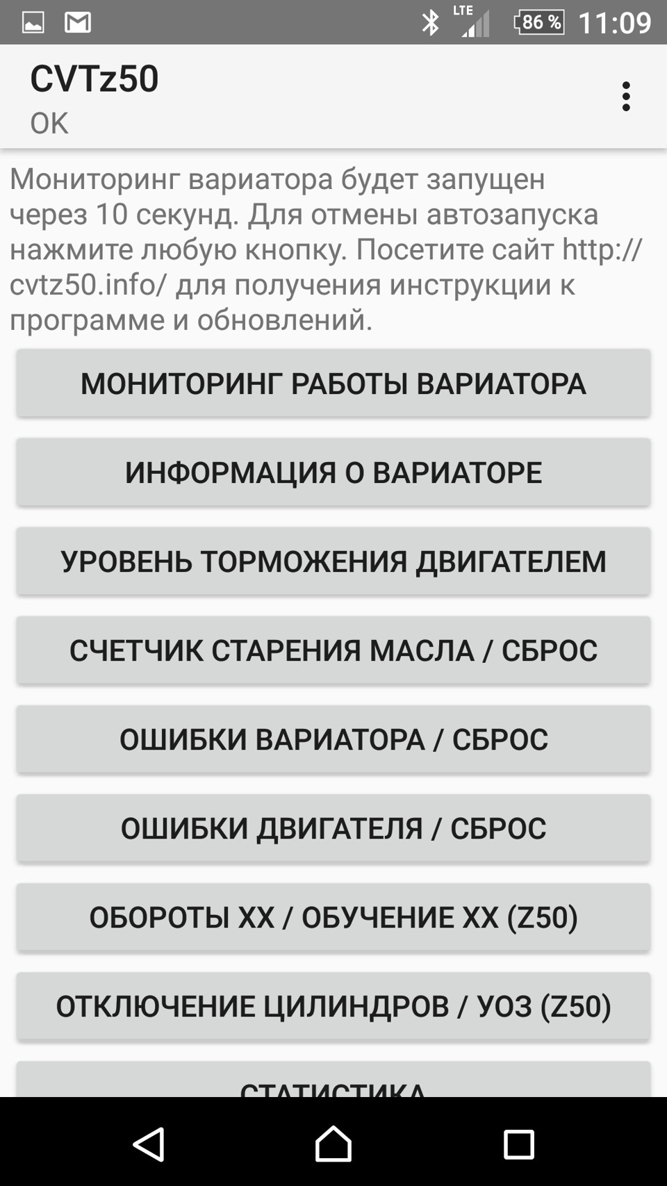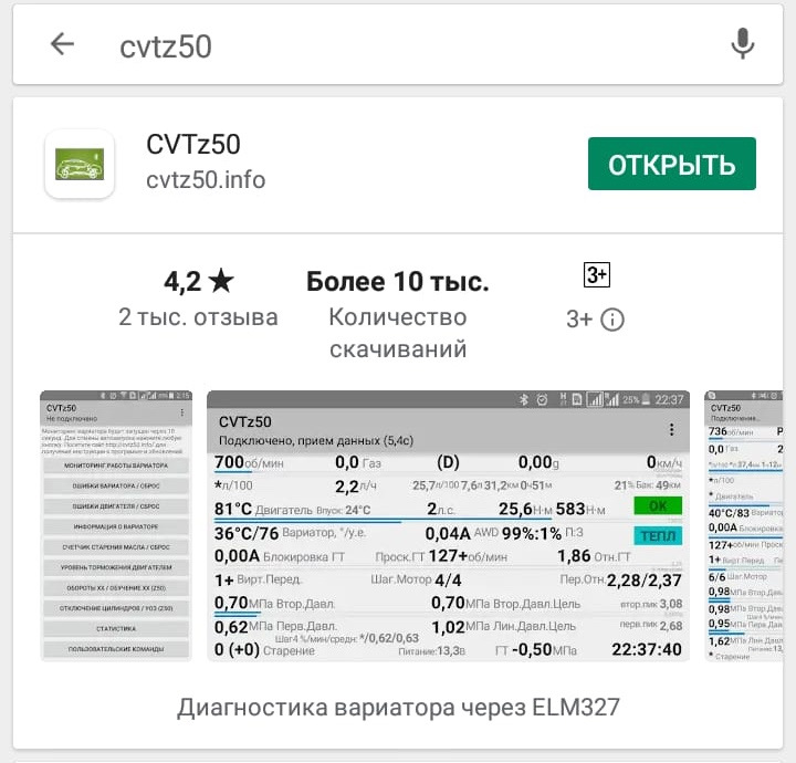 Диагностика вариатора программой cvtz50