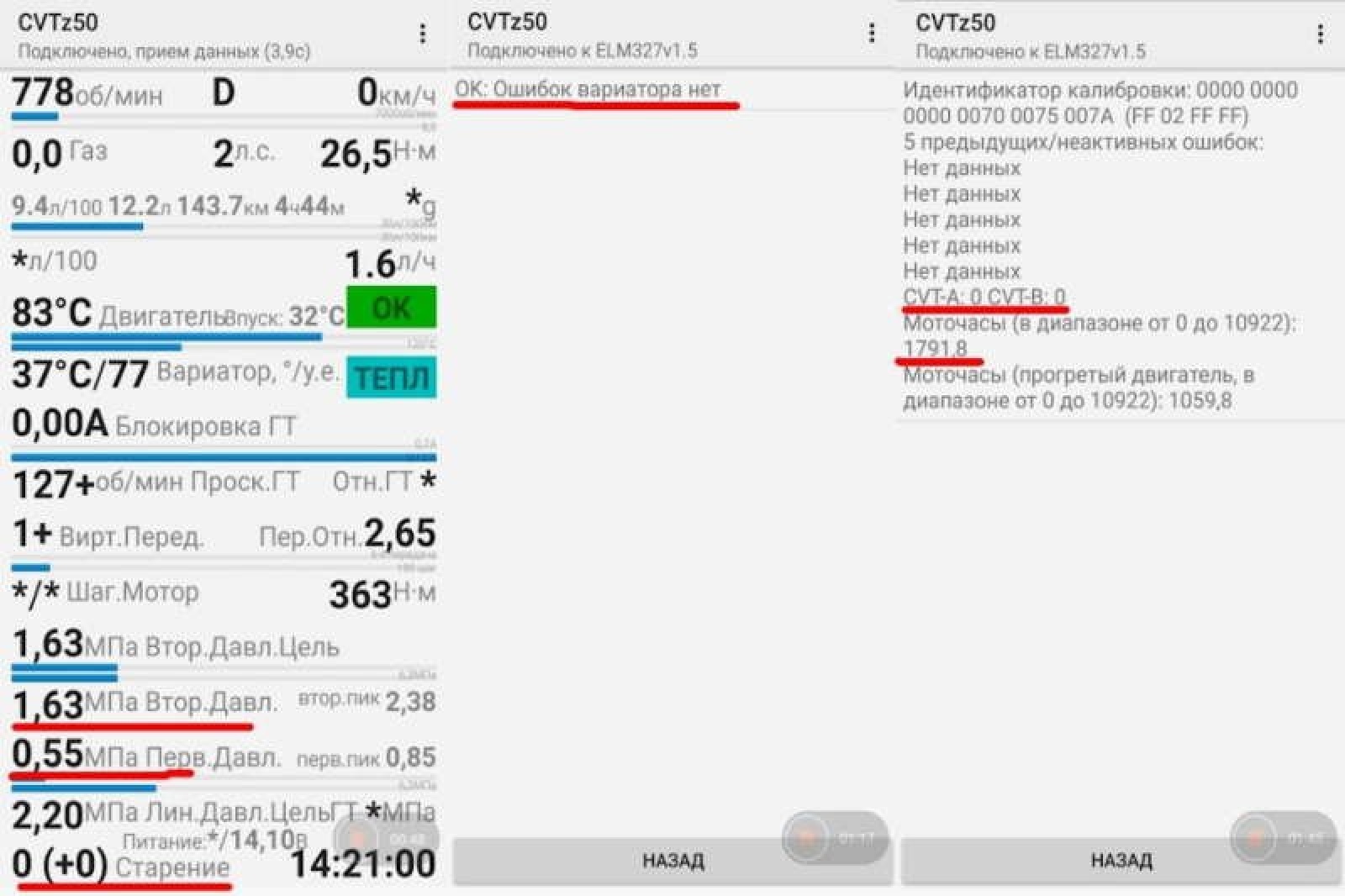 Диагностика вариатора программой cvtz50 147 фото