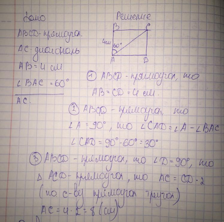 Диагональ прямоугольника авсд равна 10 угол вас 109 фотографий