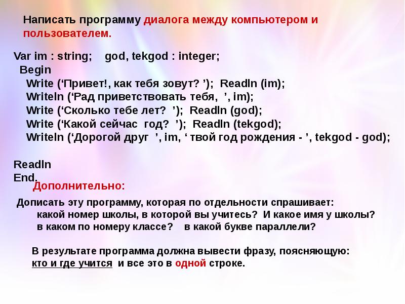 Диалог с компьютером c