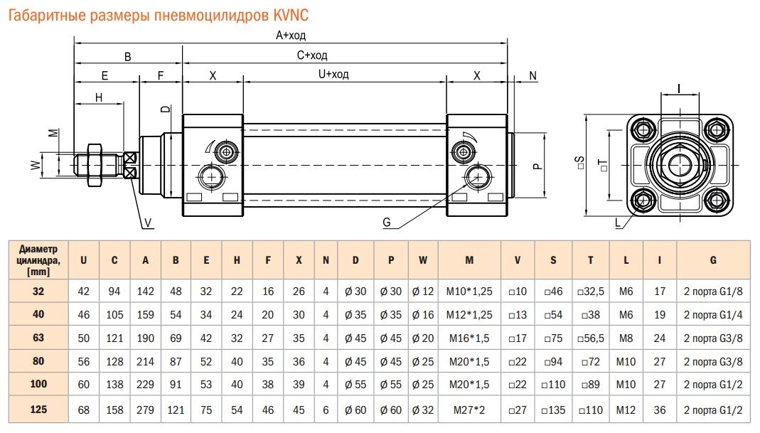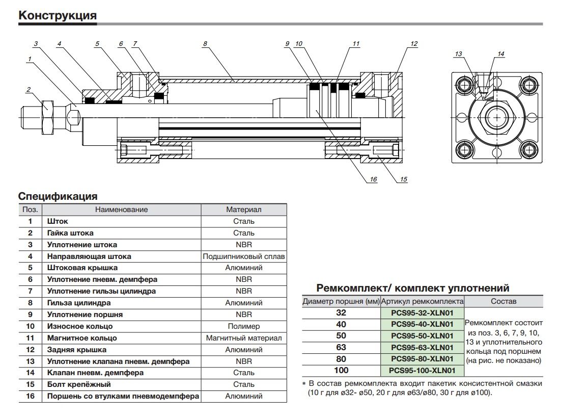Диаметры поршня пневмоцилиндра