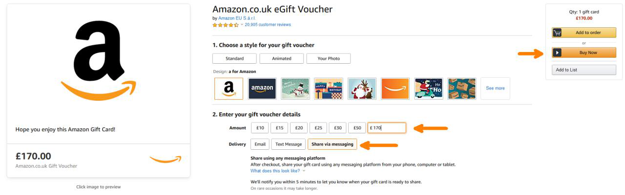 - Click the link above, enter the amount in the box, select "Share via messaging", then choose "Buy Now".
