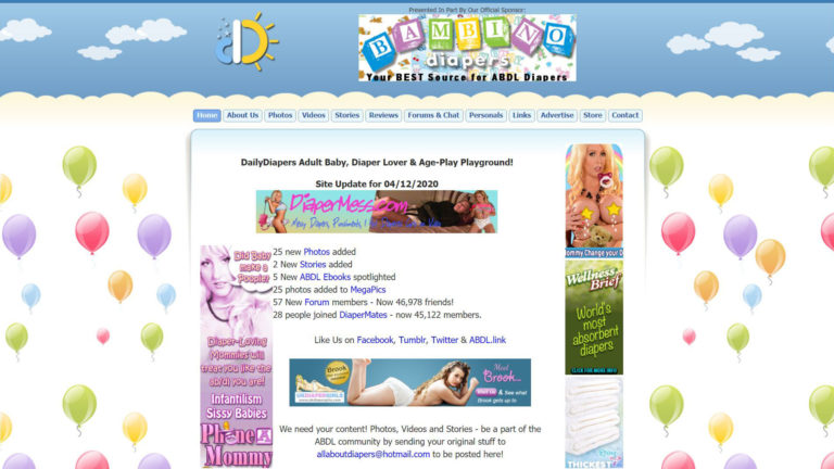Daily Diapers is the premiere community for Adult Babies, Diaper Lovers, Big Kids, Mommies and Daddies featuring over 25,500 FREE photos of diapered women, men and couples; Plus stories, diaper reviews, videos, personal ads, message boards, polls and so much more! If you wear diapers, this is your online home!