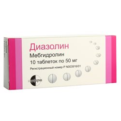 Таблетки 50 мг и 100 мг . Драже 50 мг и 100 мг . Диазолин- блокатор гистаминовых H1-рецепторов, производное этилендиамина . Оказывает противоаллергическое, противозудное, противоэкссудативное, а также слабое седативное действие . Обладает м-холиноблокирующими свойствами . Фармакокинетика После приема внутрь быстро абсорбируется из ЖКТ .
