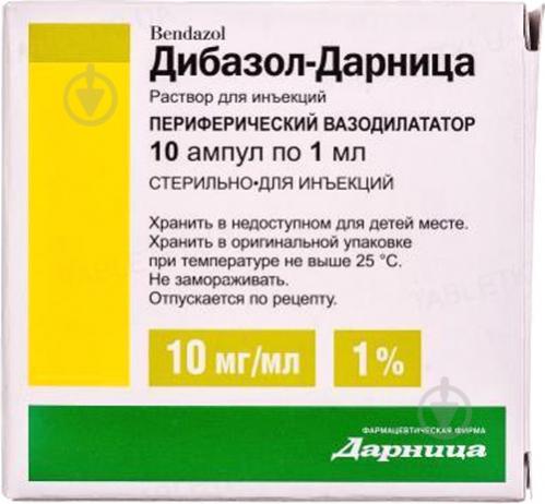 Дибазол - консультация врача Форма выпуска и состав Лекарственное средство производят в виде таблеток, в ампулах для приготовления инъекций . Активный компонент - бендазол . Ампула раствора для приготовления инъекций состоит из активного вещества в объеме от 5 до 10 мг в 1 мл . Таблетка состоит из 20 мг бендазола .