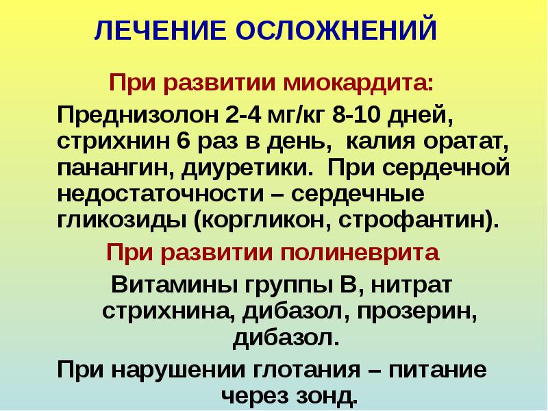 Из лечебных средств - дибазол, прозерин, галантамин . Профилактика . Специфическая профилактика проводится в эндемичных районах с помощью вакцины, причем в антропургических очагах вакцинируют и людей и домашних сельскохозяйственных животных . Во время эпидемических вспышек проводят пассивную иммунизацию населения специфическим гамма-глобулином .