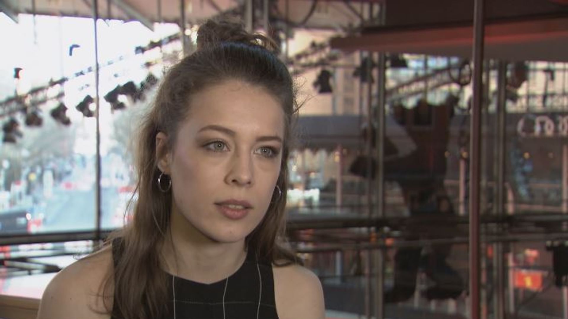 Dicke deutsche Frau bei einem Interview