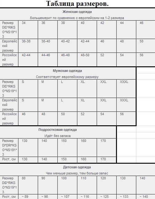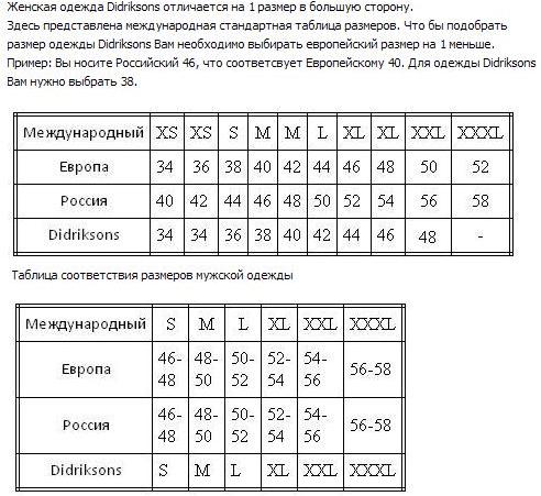 Дидриксон размерная сетка 115 фотографий