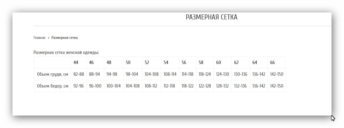 Дидриксон размерная сетка
