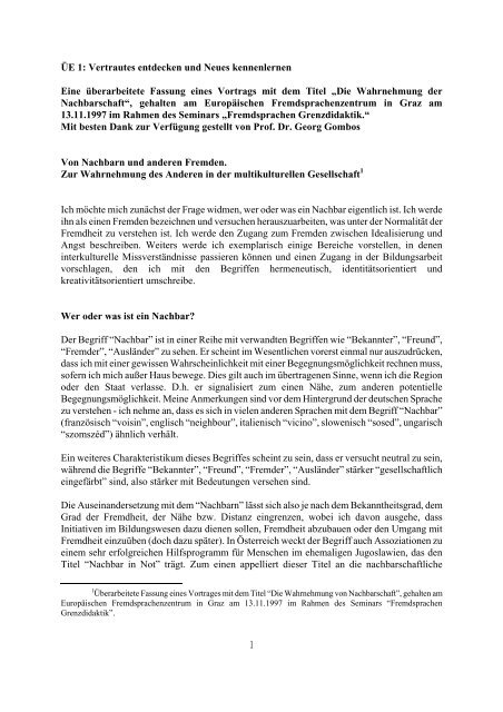 Die Nachbarn kennen lernen