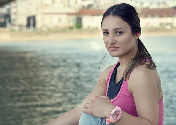 Die Sportlerin macht eine Pause