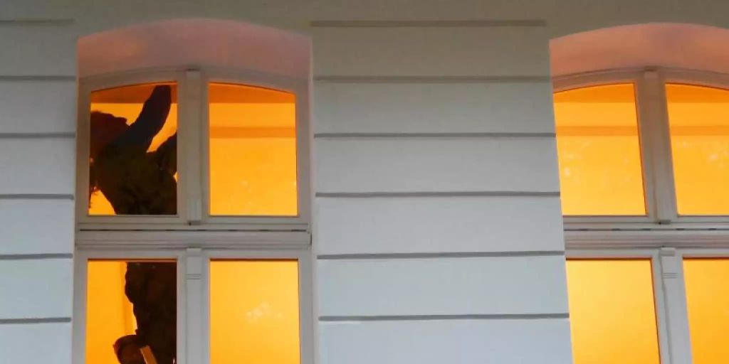 Fenster putzen mit riesigen Brüsten