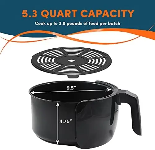 "Digital 5.3Qt Hot Air Fryer 7 Menu Functions 1350W Oil-Less Healthy Cooker, Timer & Temperature Controls, PFOA/PTFE Free, Bl" * Buy Now With Free Shipping Just For $51