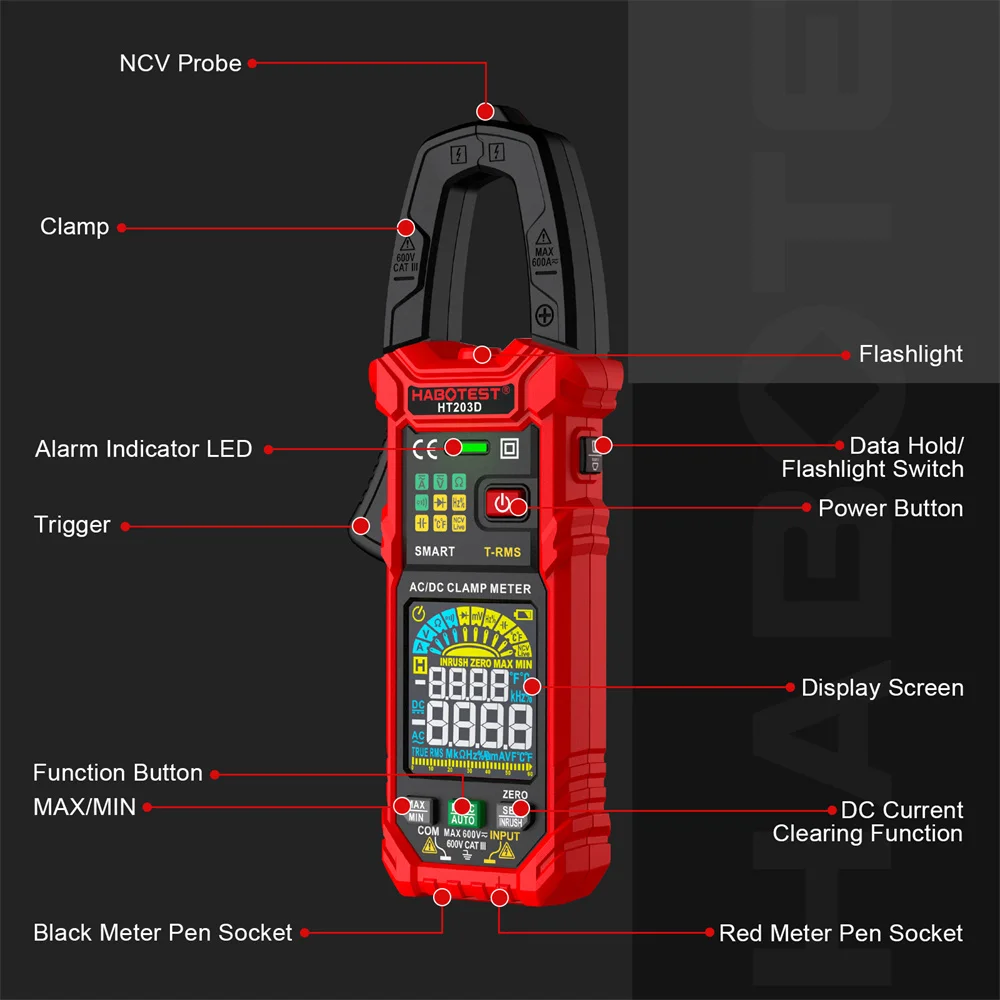 NGlHuPuEKHere you can buy Digital Clamp Meter 6000 Counts AC/DC True-RMS Multimeter Anto-Ranging Tester Current Clamp Digital Ammeter Clamp Meter HT203D with free delivery to your post office.