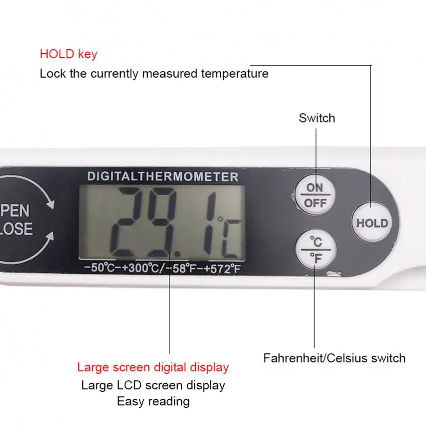 «Digital Meat Thermometer Cooking Food Kitchen BBQ Probe Water Milk Oil Liquid Oven Folding Digital Probe Sensor Meter Tester» по лучшей цене на рынке! Всего за 6$ (570рублей)