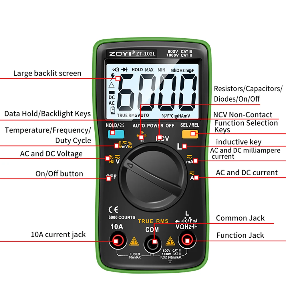"Digital Multimeter 6000 Counts True RMS Current Voltage Capacitance Resistance Inductance Frequency Diode Tester LCD Voltmeter" * Buy Now With Free Shipping Just For $18