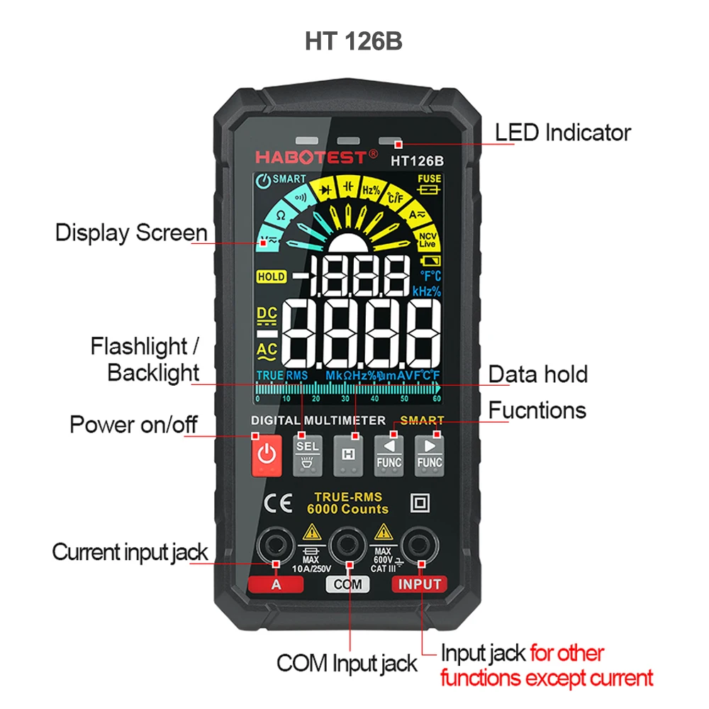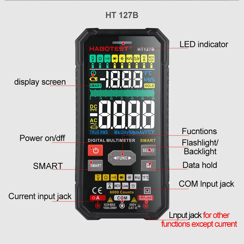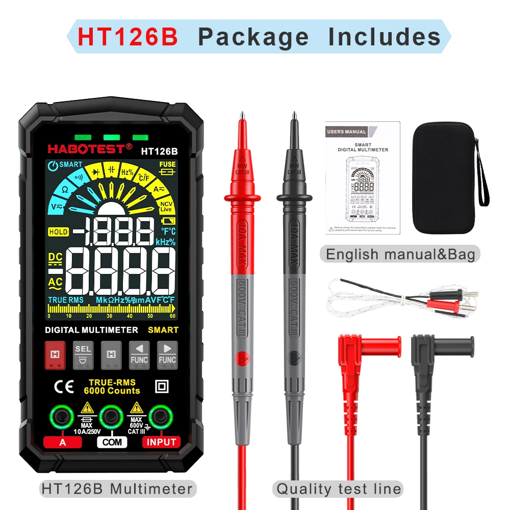 Digital Multimeter Tester HABOTEST HT126 HT127 Smart Multimeter Range Voltmeter True RMS NCV AC DC Voltage Meter 6000 Counts - Купить с бесплатной доставкой