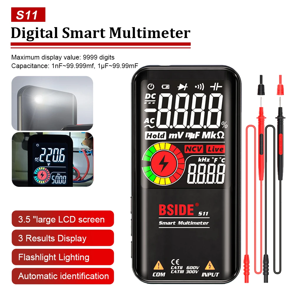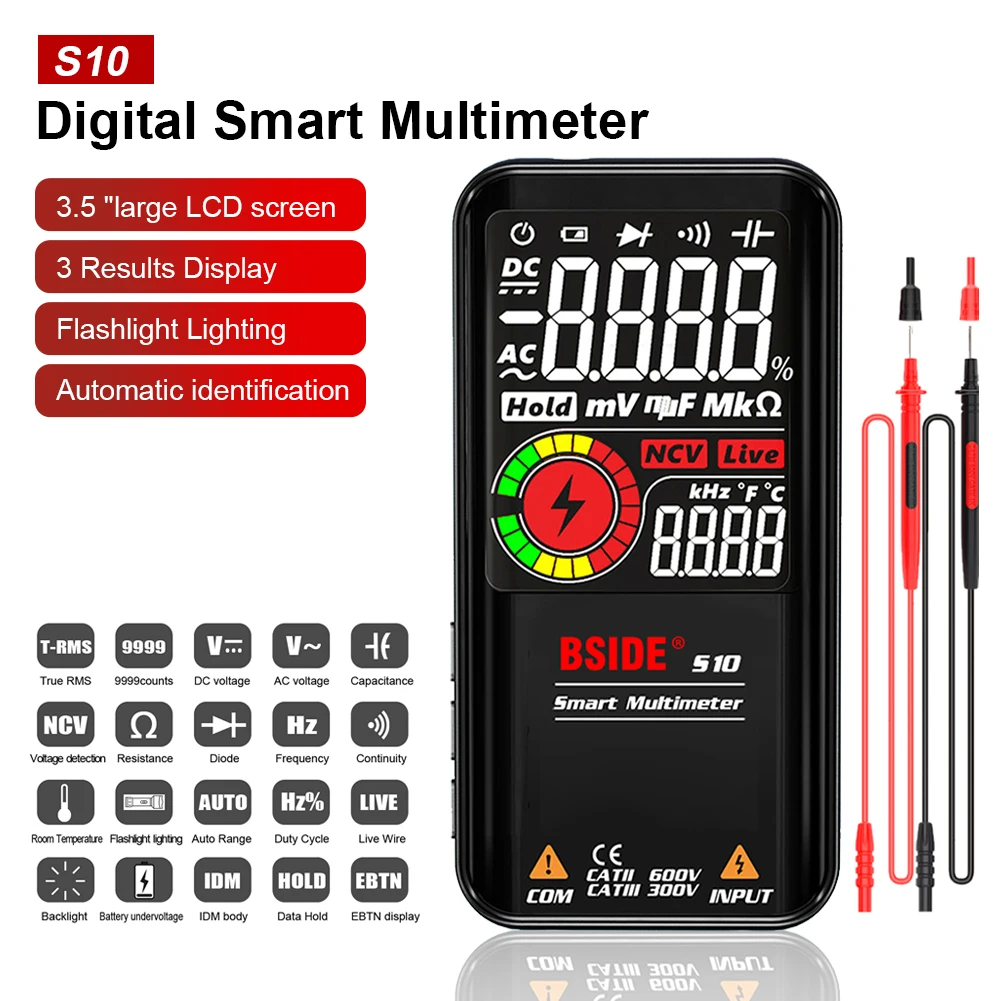 Digital Smart Multimeter 9999 Counts 3.5" LCD Color Display DC AC Voltage Capacitance Ohm Diode NCV Hz Live Wire Tester - Купить с бесплатной доставкой