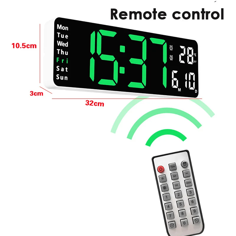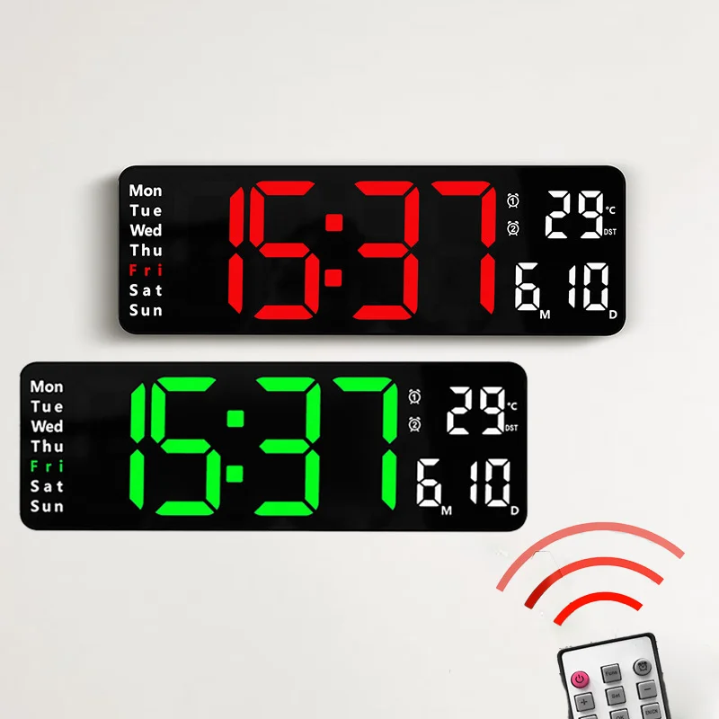 Digital Wall Clock Large Alarm Clock Remote Control Date Week Temperature Clock Dual Alarms LED Display Clock Living Room Decor - Купить с бесплатной доставкой