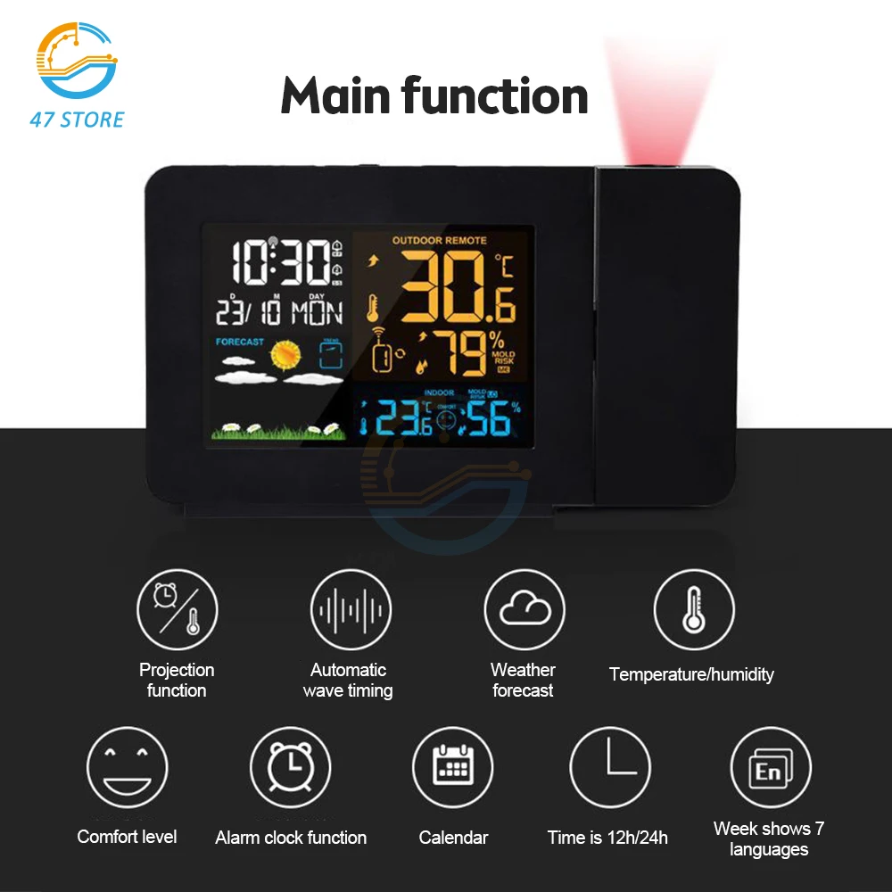 PEXjZFfbЗдесь вы сможете купить Digital Weather Station Temperature Hygrometer Weather Forecast Barometer Moonphase Alarm Clock Time Projector Wireless Sensor с бесплатной доставкой до вашего почтового отделения.