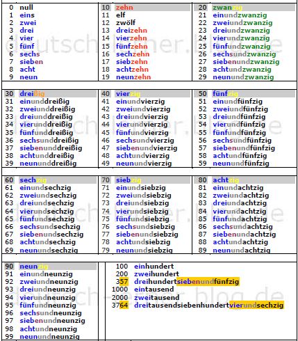 Numbers in German game 0-100: language learning practice quiz