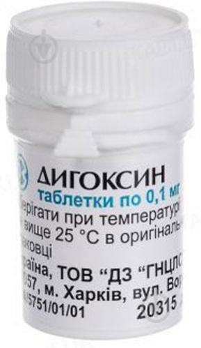 Дигоксин таблетки по 0 .1 мг №50 у бан . Здоров'я, ФК, ТОВ від 6 .13 грн знайдено у 1041 аптеці Ціни в аптеках Дигоксин розчин д/ін . 0 .25 мг/мл по 1 мл №10 в амп . Дослідний завод "ДНЦЛЗ", ТОВ від 39 .90 грн знайдено у 3260 аптеках Ціни в аптеках Дигоксин таблетки по 0 .1 мг №50 (10х5) Здоров'я, ФК, ТОВ від 7 .50 грн знайдено у 733 аптеках Ціни в аптеках