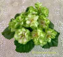 Сорт 2009г . Крупные густо-махровые пушистые дымчато-сиреневые цветы с ярко-фиолетовыми кончиками лепестков (как ушки у кошки) . Тёмно-зелёная компактная розетка .