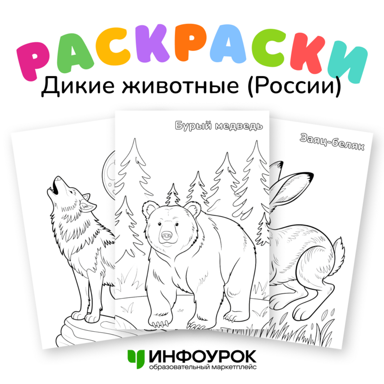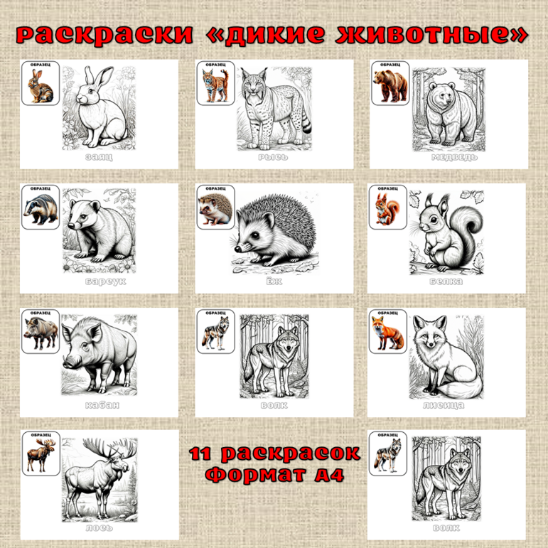 Дикие Животные Картинки Для Детского Сада Раскраски