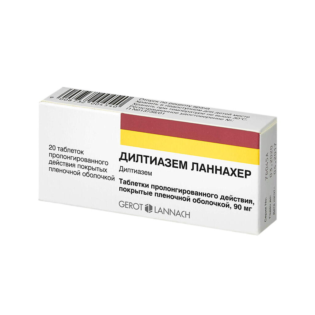 Дилтиазем Ланнахер: Ретард таб 90 мг N20 (Ланнахер Хайльмиттель ГмбХ (Австрия) 156 .10 : Дилтиазем ретард: 180мг №30 капс пролонг (К .О . Ромфарм Компани С .Р .Л . (Румыния) 306 .50 : Дилтиазем* (Diltiazem*)