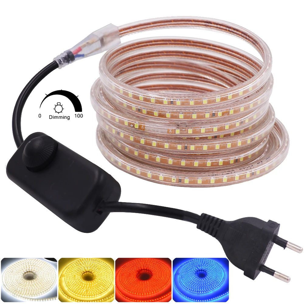 LUPfHSSaHere you can buy Dimmable LED Strip Light 220V 2835 Waterproof LED Strip High Brightness 120Leds/m Flexible LED Ribbon Tape with Dimmer Decoratio with free delivery to your post office.