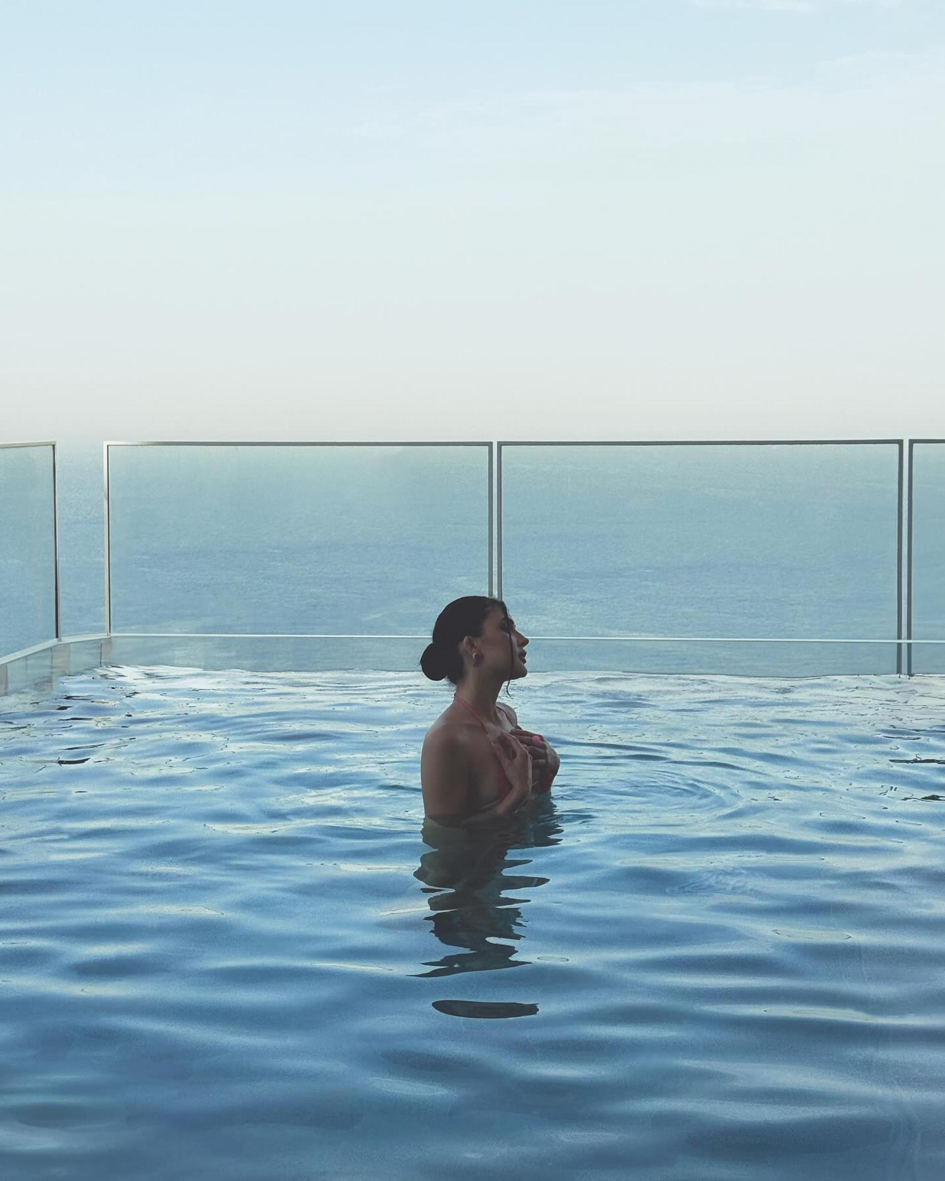 Фото Рыжеволосой Женщины Поднимающей Волосы Вверх