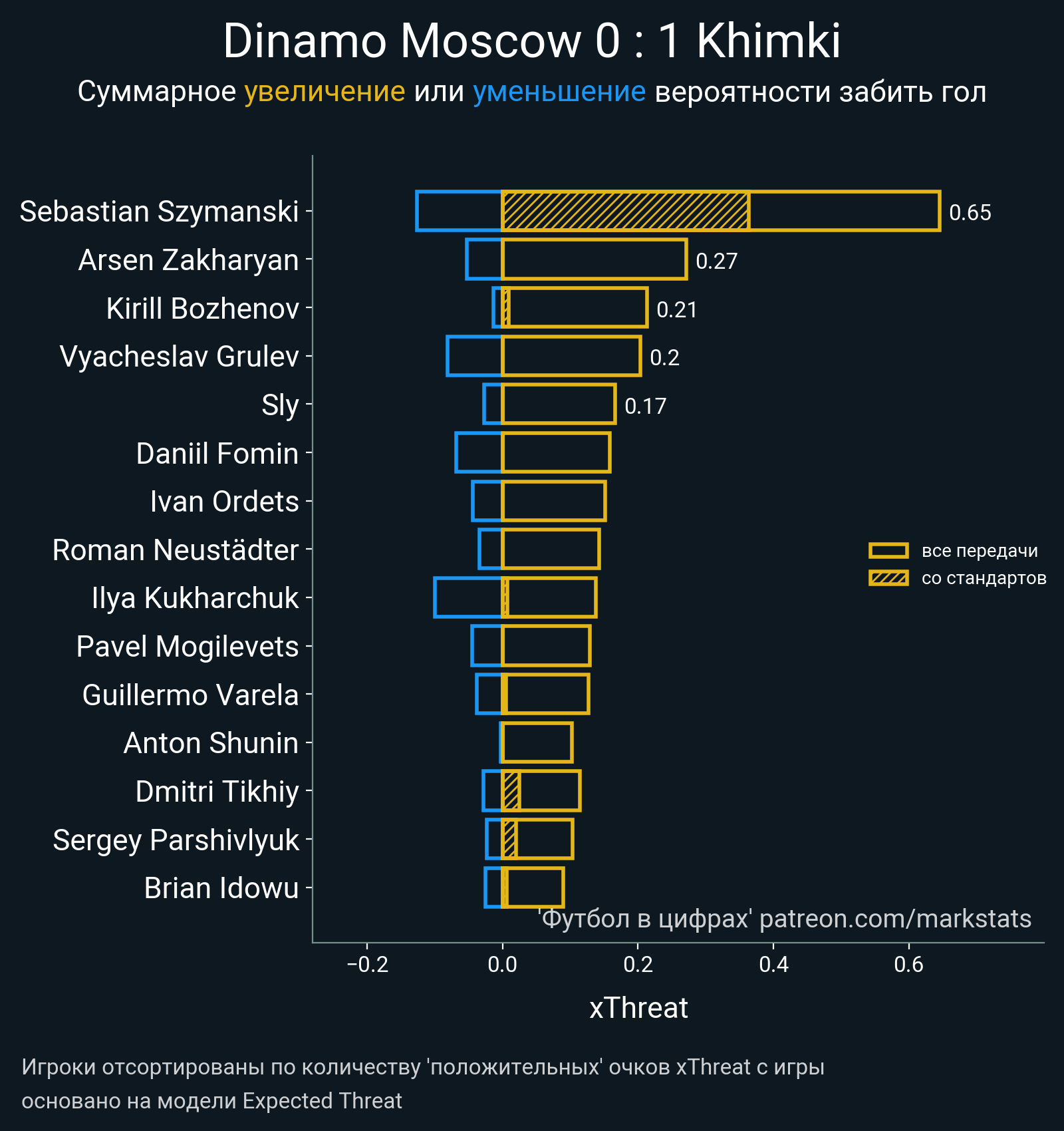 Очки xThreat с игры: